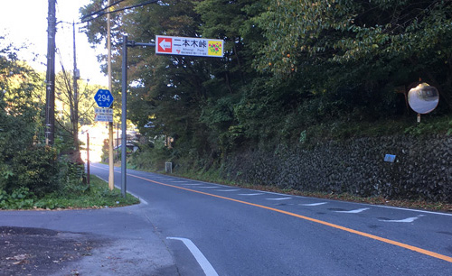 小川方面より県道294号線(坂本寄居線)の東秩父村「落合橋」交差点を直進し、800m行くと道路上に「二本木峠」の看板がありますので左折してください。